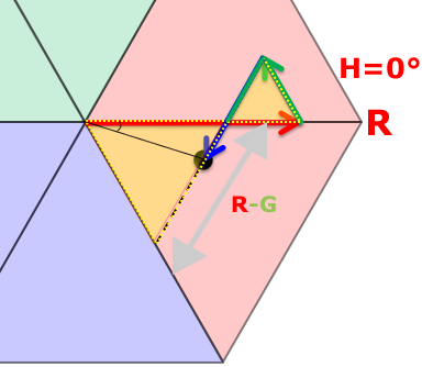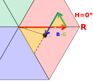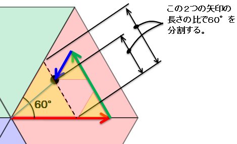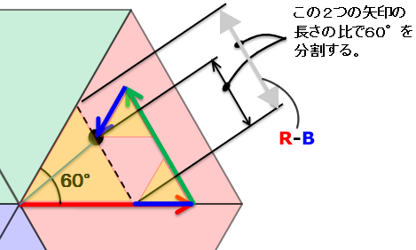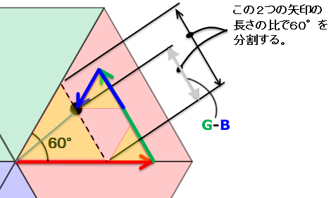 考え方A.長さの比率で角度60°を分割 / R≧G≧B