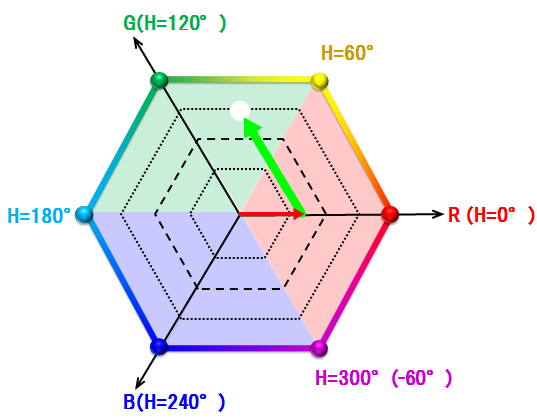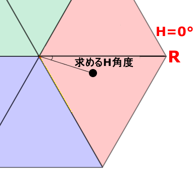 「HSL水平断面図である正六角形」をRGB各成分の大小関係で6エリアへ分類